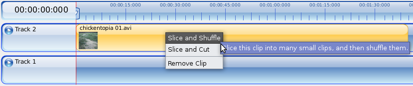 1) Slice and Shuffle - This option slices the clip into many small clips, and then shuffles them in-place.